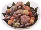Jede Frucht wird mit Eiweiß bestrichen und über einem großen Teller gehalten mit Zucker bestreut, bis sie ganz umhüllt sind. (Früchte können auch im Zucker eingetaucht werden, allerdings wird der Zucker leicht klumpig) Ordnen Sie die Früchte so an, das großes Obst unten bzw. in der Mitte liegt. Alle anderen Früchte werden drumherum aufgeschichtet. Eine leckere Dekoration an der ruhig auch genascht werden darf!